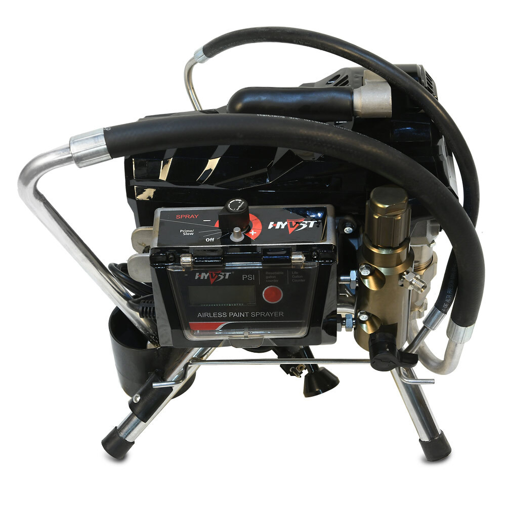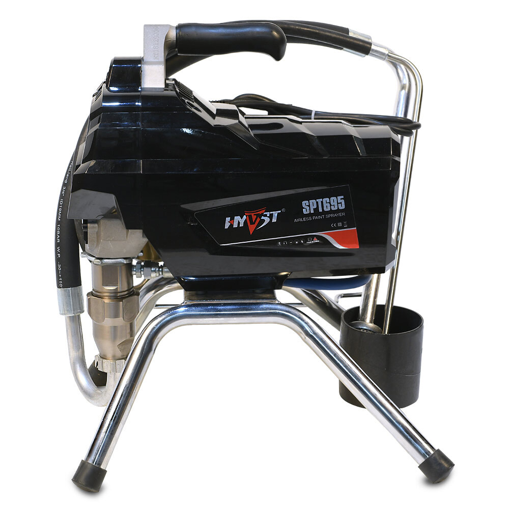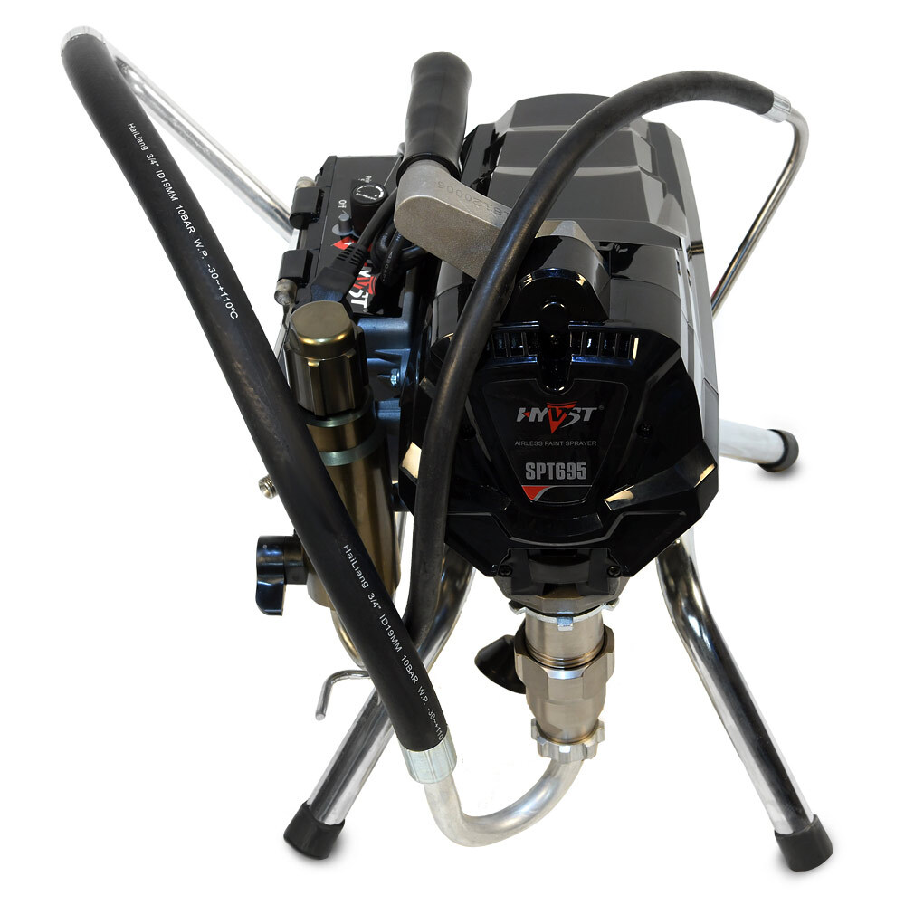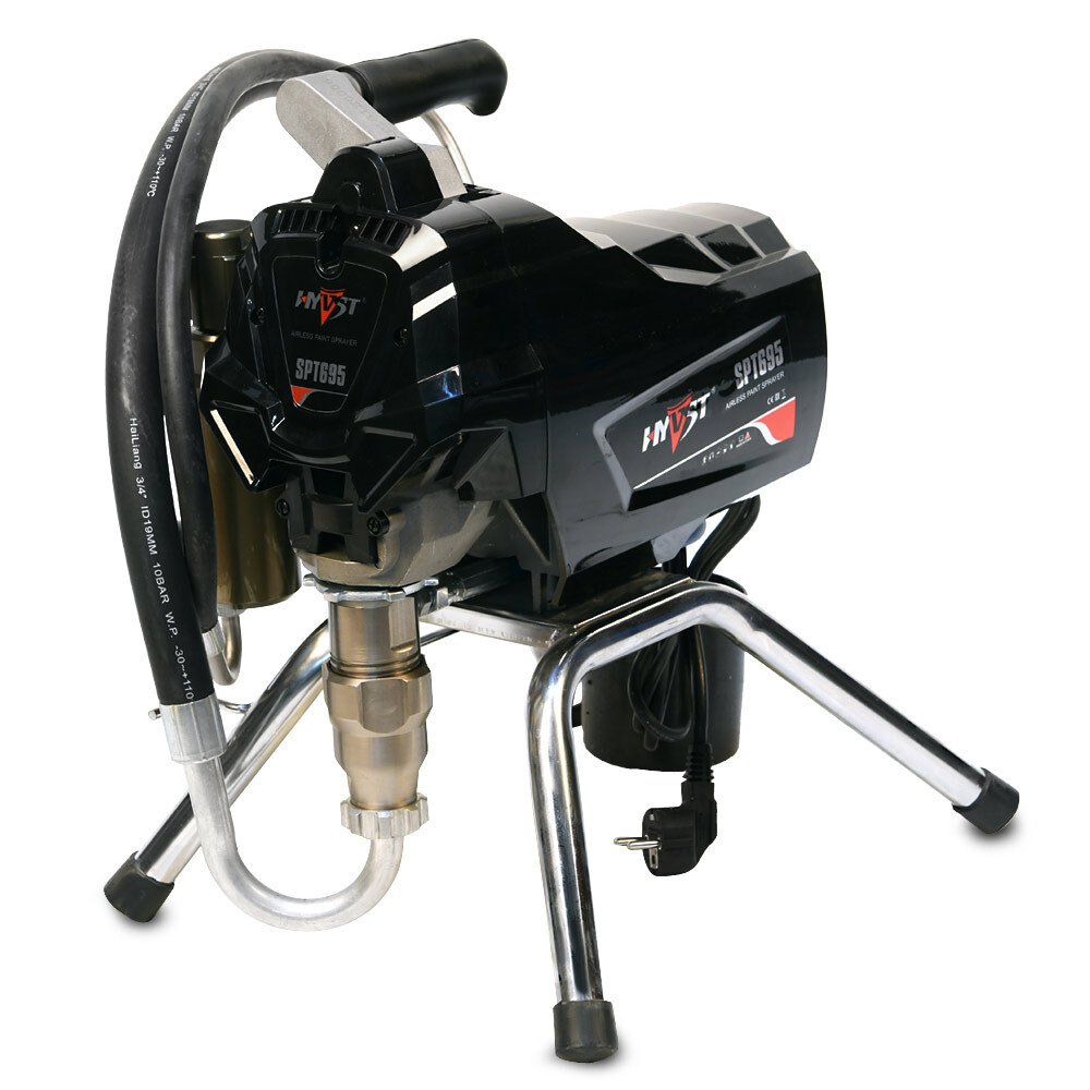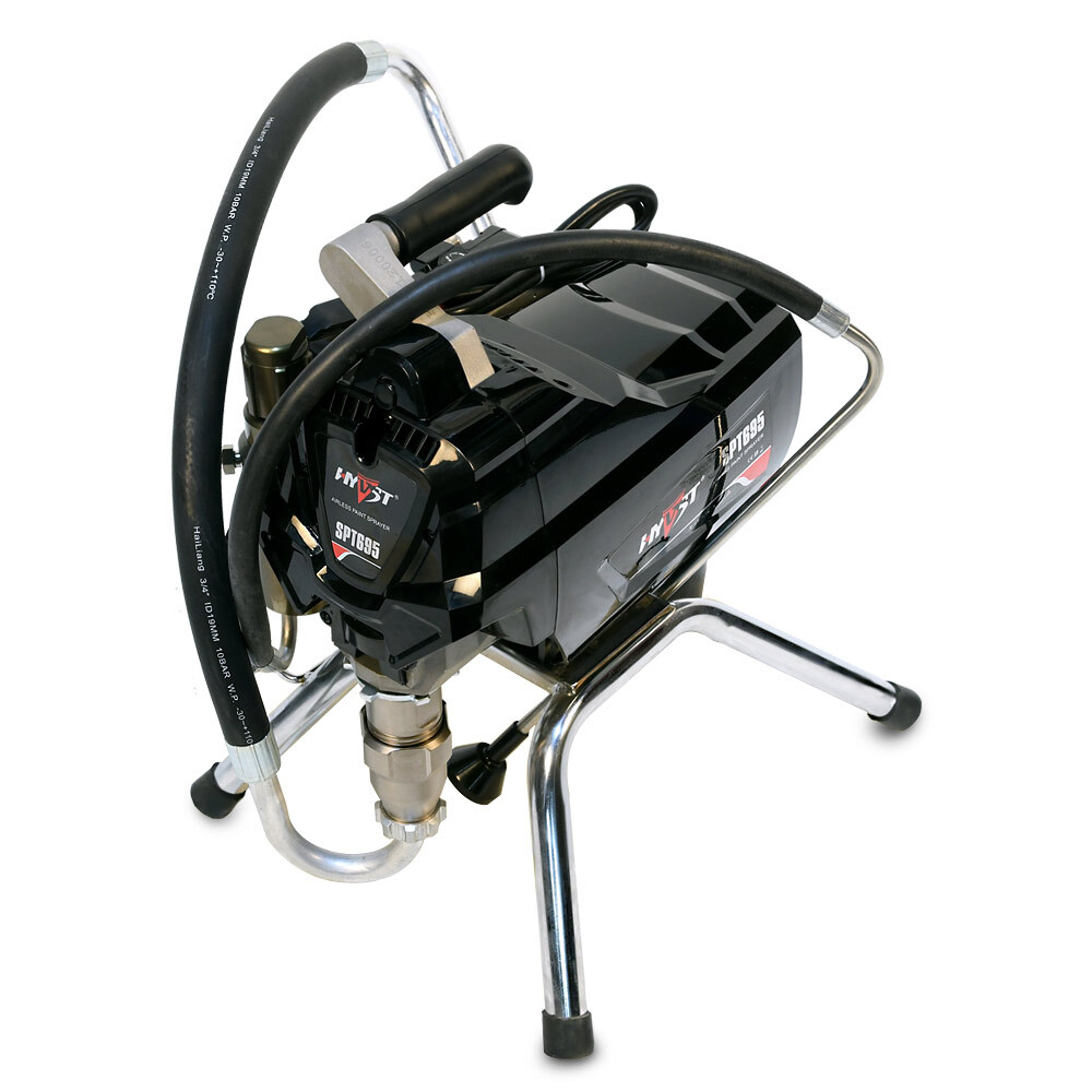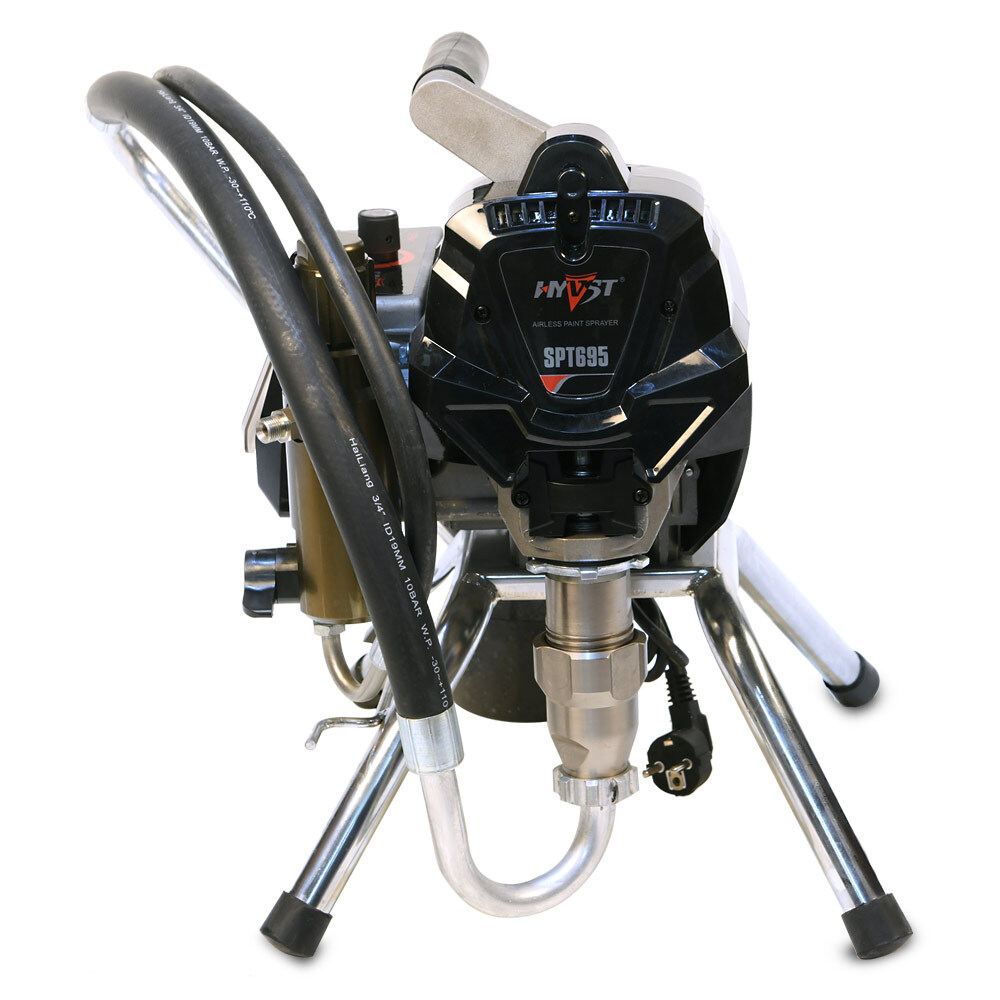 HYVST SPT 695 - поршневой безвоздушный окрасочный аппарат, предназначенный для внутренней и наружной покраски зданий, покраски и грунтовки металлоконструкций, покраски и пропитки деревянных изделий. Для безвоздушного распыления материалов используется специальный пистолет-краскопульт высокого давления.