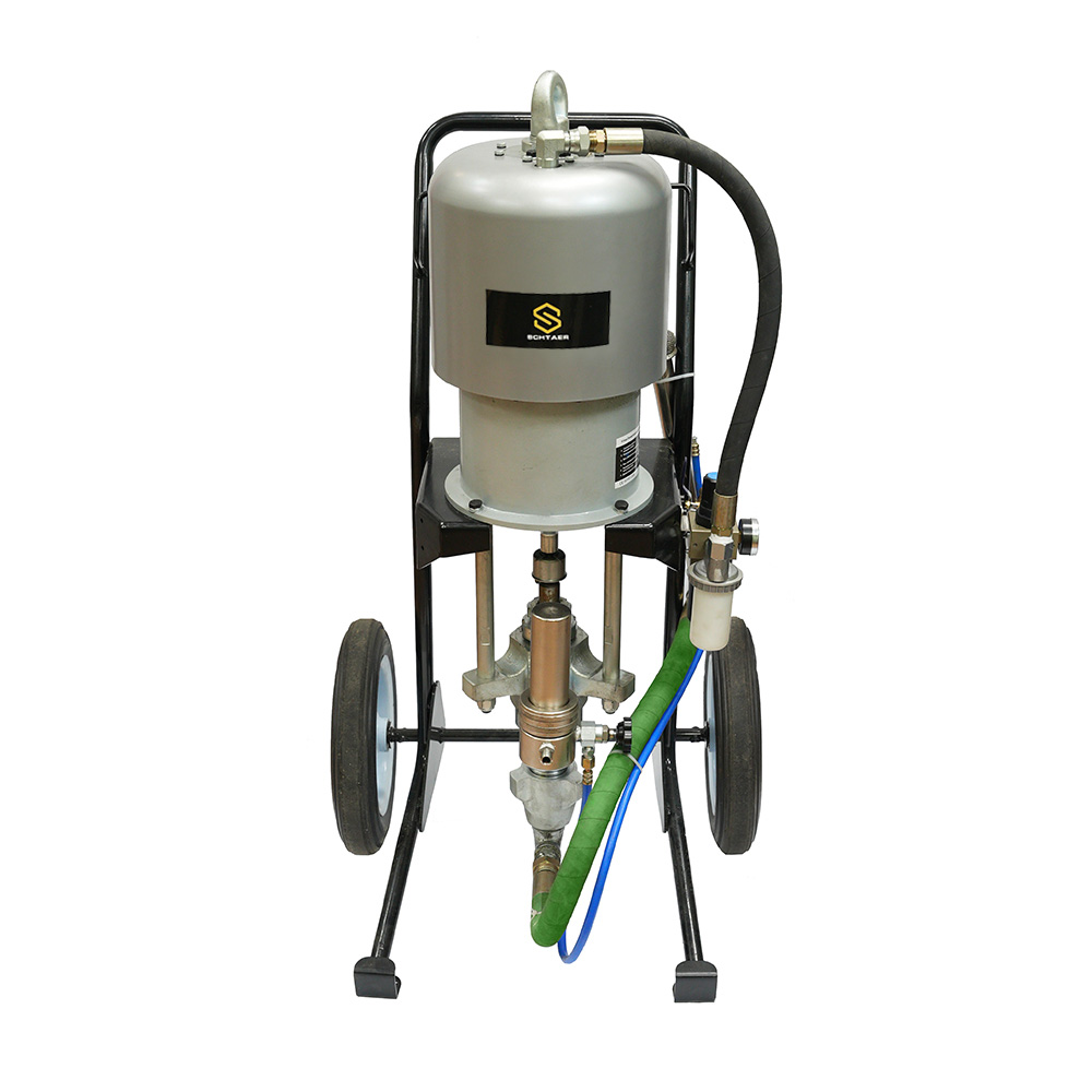 Schtaer P681 - поршневой безвоздушный окрасочный аппарат, работающий от сжатого воздуха из компрессора. Окрасочный аппарат предназначен для промышленного применения на заводах по производству металлических конструкций, вагонных заводах, оконных и дверных фабриках, на производствах, где требуется массовая покраска однотипных изделий одной и той же краской. Окрасочный аппарат может работать круглосуточно, он охлаждается от краски. Аппарат может распылять безвоздушным способом краски на водной основе и краски на растворителях.