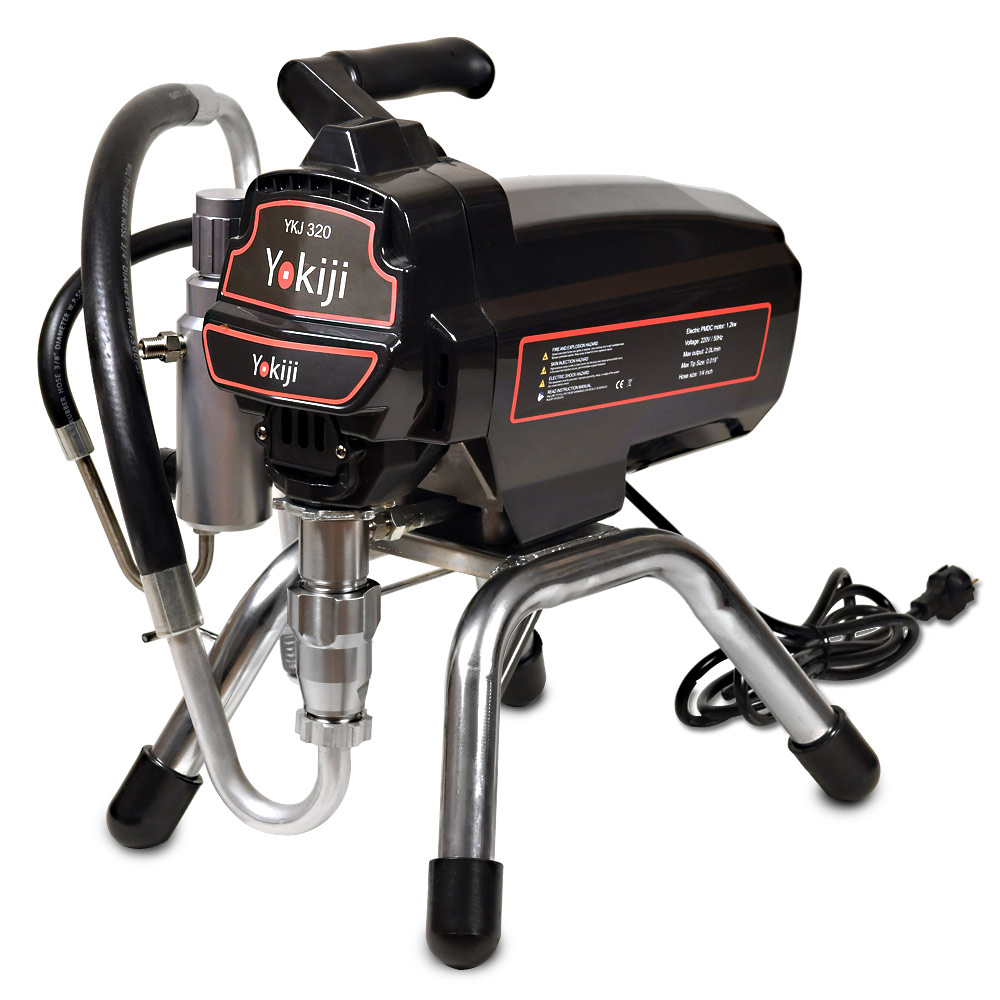 YOKIJI YKJ 320.1 – компактный легкий поршневой безвоздушный аппарат для покраски стен, потолков, фасадов, грунтования и окраски металлических и деревянных конструкций. Материал подается от окрасочного агрегата через краскопульт для безвоздушного распыления под высоким давлением. Оснащен фильтром материала перед подачей на шланг